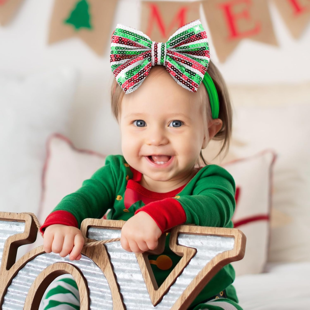Product Pick: Holiday Baby Headband Set – A set of bows in red, and green, with added sequins for every occasion.