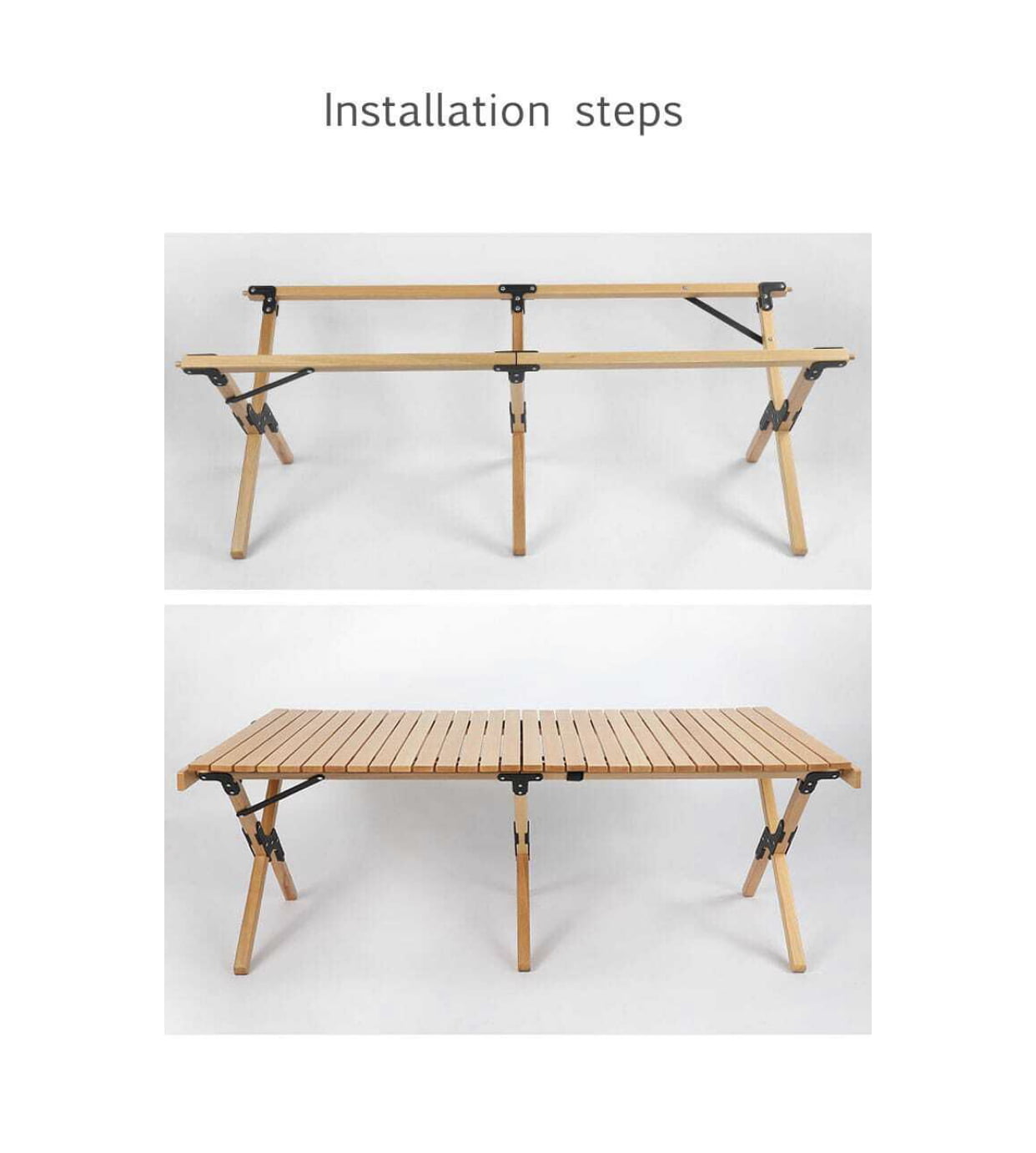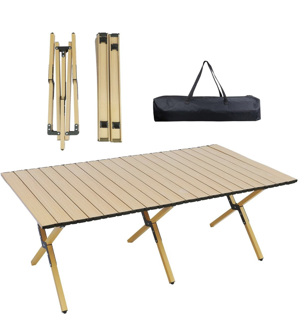 This wooden foldable outdoor wooden table comes with a bag, which is easy to carry and suitable for outings and outdoor use. The Folding Camping Picnic Table comes with a handy Carry Bag and is easy to transport and assemble. Can handle a load of up to 30kg.